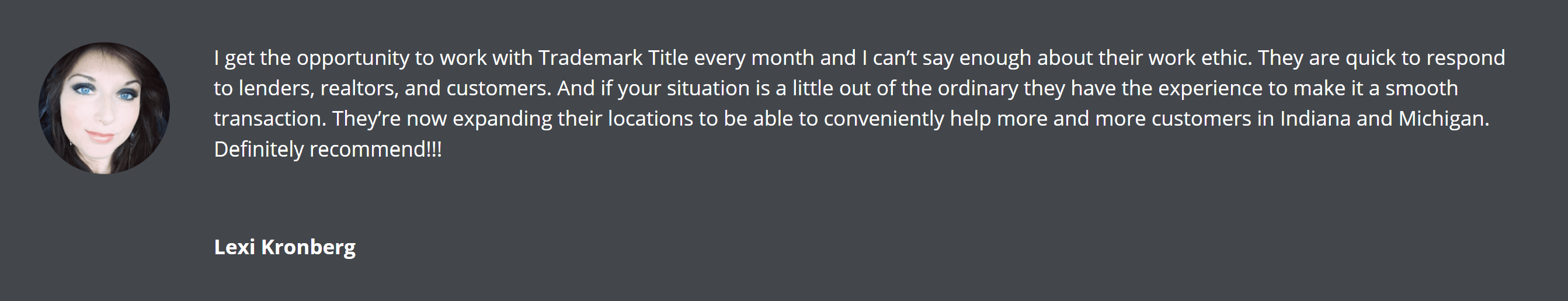 Trademark Title has become one of Northern Indiana’s most recognized, respected and fastest growing title agencies.